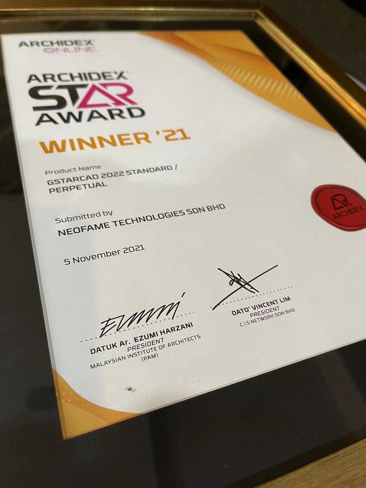 The ARCHIDEX Star Award celebrates excellence in product design in the architecture, interior design and building industry. And our product GstarCAD 2022 Standard/Perpetual, submitted by our partner in Malaysia NEOFAME, has lived up to the expectations and won this special award.